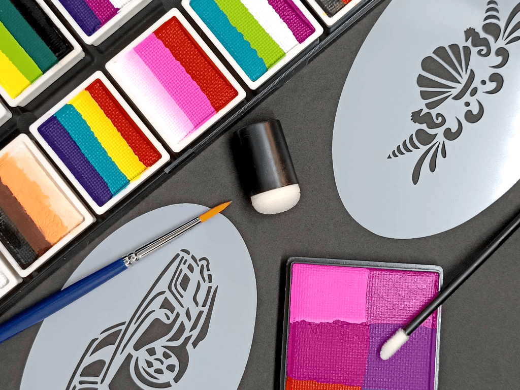 Tout le matériel (pinceaux, éponges, pochoirs …) et les produits utilisés sont nettoyés et désinfectés entre chaque séances. Durant la prestation : les éponges sont à usages unique et les pinceaux désinfectés entre deux personnes et l’eau régulièrement changée.