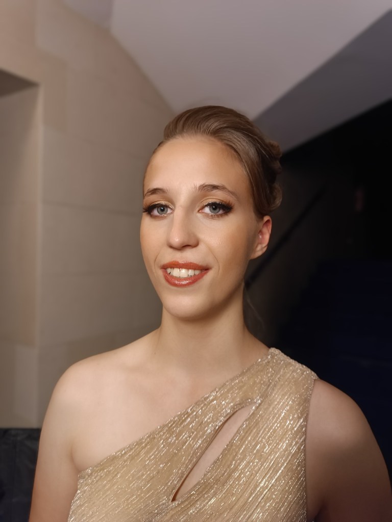 Maquillage tout en délicatesse, travail complet du teint, des sourcils, mise en valeur de votre regard et de vos lèvres.