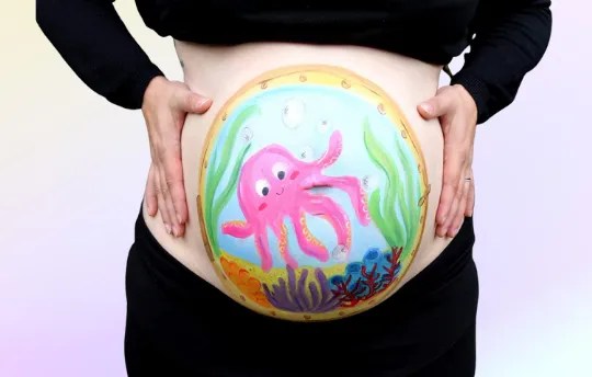 Le moment idéal pour réaliser un belly painting se situe entre le 7ème et 8ème mois de grossesse.